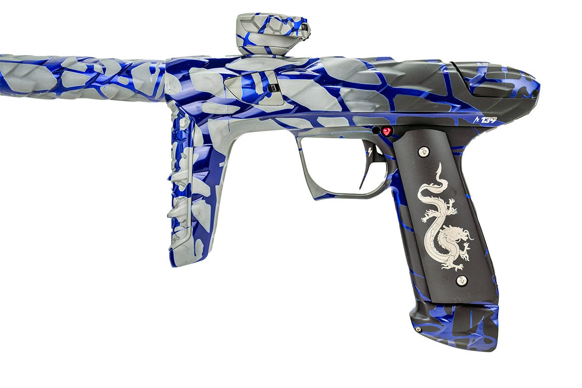 Adrenaline Luxe IDOL i blå Full Send, som er en 3D dobbel finish med støvet tinn til svart overgang og polert blå sprut.